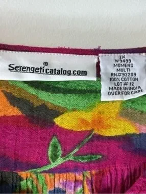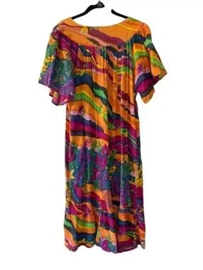 Vintage 90s Y2K Boho Tropical Print Midi Dress Multicolored Bright 1X