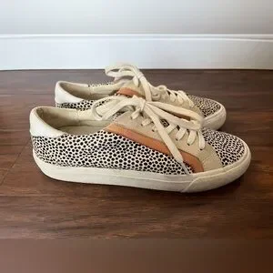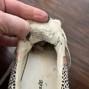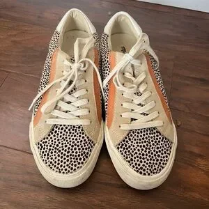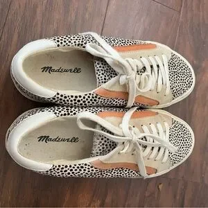 This is a used, but great condition pair of Madewell casual sneakers. Step out in style with these women's slip-on shoes with laces. These shoes have real spotted calf hair with tan and light orange suede accents. Size 7.5. All of my items are well cared for and come from a smoke free home.