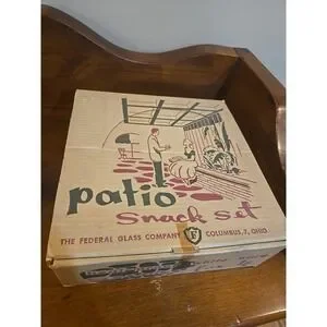 Federal Glass Company 1950s Atomic Flower Milk Glass Patio Snack Set MCM