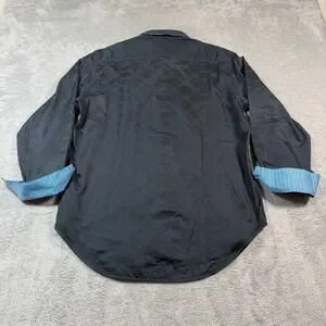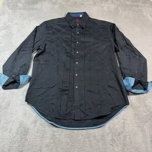 Robert Graham Button Down Shirt Mens Medium Black Satin Pleated Flip Cuff Party