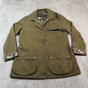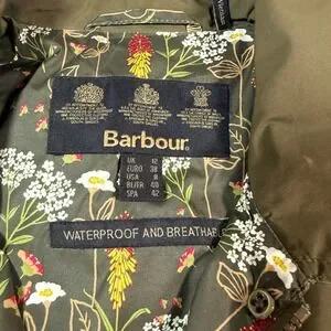 Barbour Wytherstone Waterproof Jacket Women 8 Olive Green Floral Lined Hooded