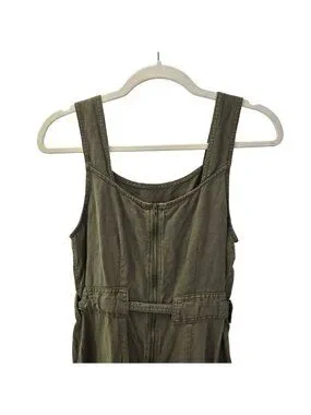 All the comfy but cool vibes in this jumpsuit that is a cropped leg style, has a wide leg design, is belted, front large pockets, and has a back zipper closure. Pretty olive green color that pairs with so many colors. Wear with a bandeau top or a tee.