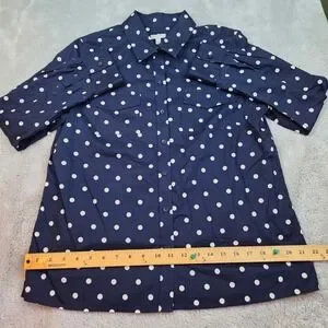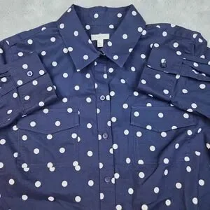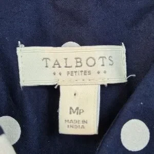 Talbots Polka Dot Cotton Button Down Shirt Womens MP Navy Blue White