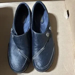 Clarks Shoes Womens 7.5 N Loafer Navy Leather Slip On Round Toe Comfort