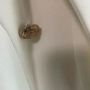 Gold button details. Open cropped blazer.. Shoulder padded. Lined. Poly/Spandex blend. Pit to pit: 18.5”, length: 19”, arms: 25”.
