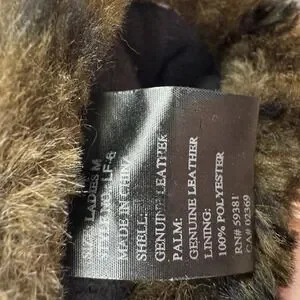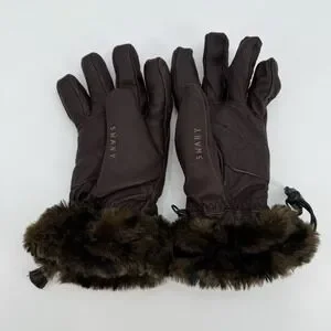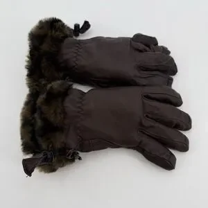 Swany Brown Genuine Leather Gloves With Faux Leopard Fur Trim Womens Size Medium