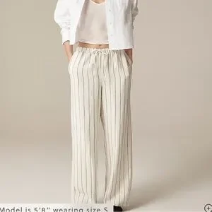 J. Crew New Soleil pant in striped linen Small Cream and Blue Striped Garment