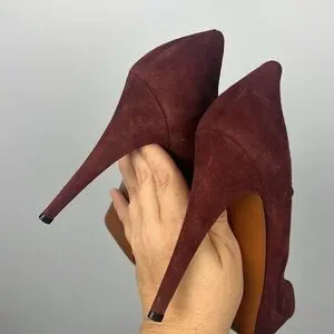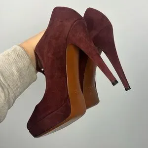 Gucci Betty classic t-strap burgundy high heel suede leather shoes size 40.5