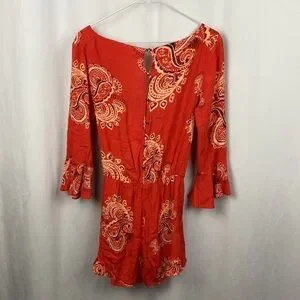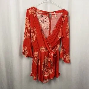 Free People All The Right Ruffles Romper - Orange - Size XS