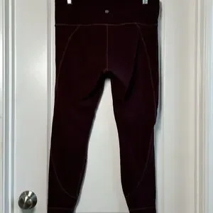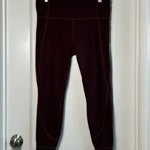 Athleta Burgundy Contrast Stitch High Rise Crop Leggings Sporty Athleisure Style