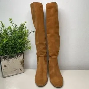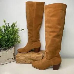Keywords: knee high boots, suede boots, brown boots, cognac, camel, stacked heel, Slouchy, tall boots, fall boots, winter boots, fashion boots, dress boots, casual boots, boho boots, western, coastal cowboy