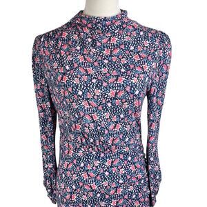 Rebecca Taylor Blue Red Floral Long Sleeve Mock Neck Stretch Zip Up Mini Dress