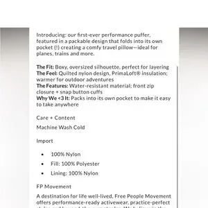 Free People Pippa Packable Puffer Size Small NWT