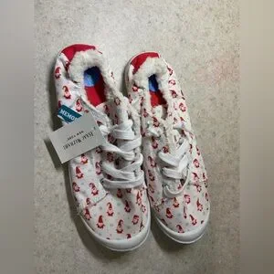 Stylish sneakers with a red and white pattern. Perfect for casual outings. Comfortable fit.