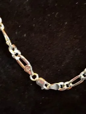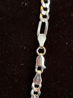 Classic Figaro link chain in bright silver tone. Polished finish with alternating long and short links. Simple, versatile necklace for everyday wear. NWOT