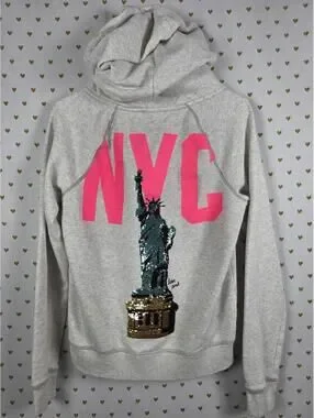 Victorias Secret Pink NYC Bling Statue Of Liberty New Yorg Full zip Hoodie Med