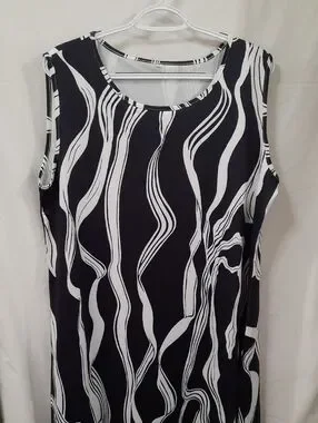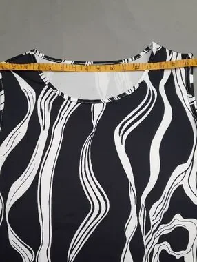Women’s Black & White Sleeveless Wave-Print Top - Size XXL