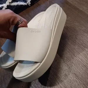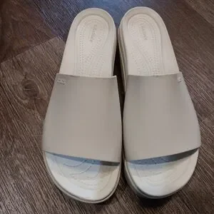 Crocs Brooklyn Women's Platform Comfort Slide Sandal Bone Cream - Size 11 Used