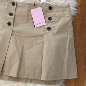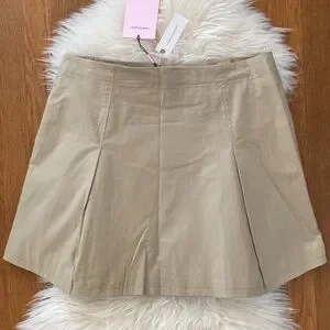 Avec Les Filles Pleated Preppy Mini Skirt in Safari Khaki