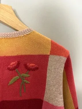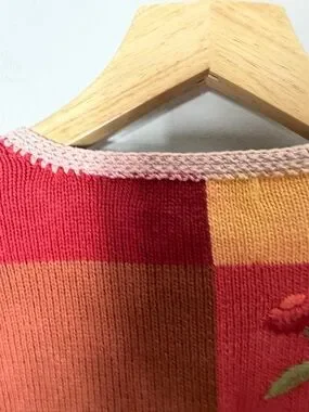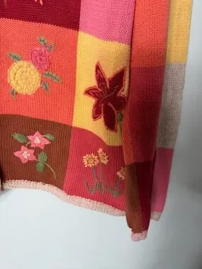 Vintage Appleseeds Ramie Cotton Cardigan Sweater Embroidered Fall Floral *o