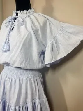 Entro Light Blue Ruffle Neck Tiered Dress