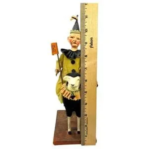Bethany Lowe Halloween Jester Clown on Sheep w/ Trick Treat Flag Jack o Lantern