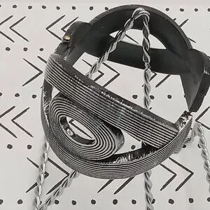 Braided BRACELET Snap On Cuff Plastic Bangle Swirls EYE Shape Silver Stripe