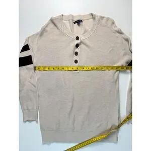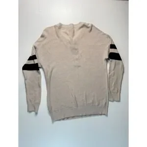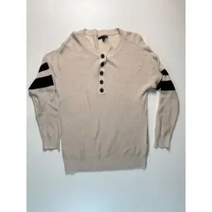 American Eagle Henley Sweater Light Beige Striped Sleeve Button Neck Casual