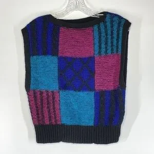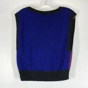 Vintage Sweater Colorblock Vest Black & Blue S/M