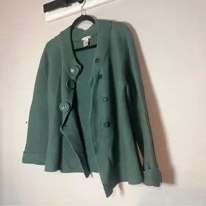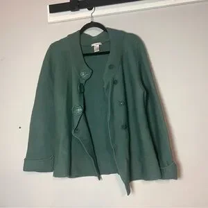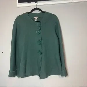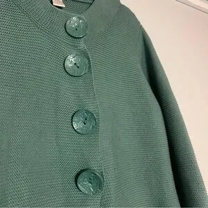 Knit Cardigan Green Snap Statement Large Button Front Size Large Cotton