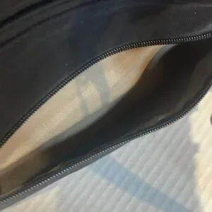 EUC Sleek and versatile black crossbody bag. Perfect for everyday use with multiple zippered compartments for organization. Inside pockets for credit cards. Only minor wear is back pocket where pen markings show inside as shown.