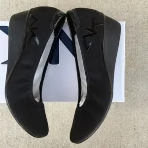 Anne Klein Sport 8.5 Black Mid Wedge Slip On Wedge Shoe