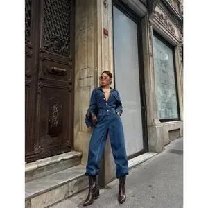 Women Denim Jumpsuit Premium Jean One Piece Outfit Casual Chic Overalls Romper