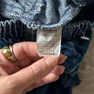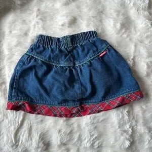Vintage Kids Oshkosh Blue denim skirt with red plaid trim #kidcore #vintage #cotton