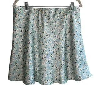 No Boundaries Daisy Floral Blue Satin Mini skirt Size Large