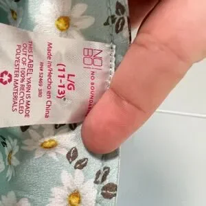 Features: fun daisy pattern elastic waist, soft a-line, satin feel
