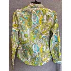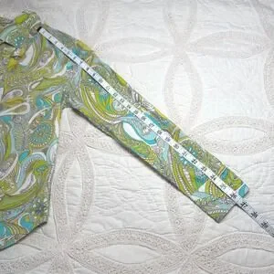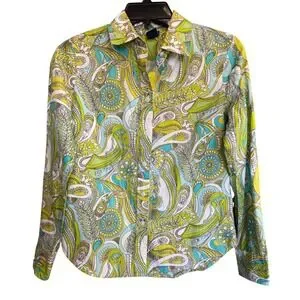 Gap Psychedelic Retro Button Down Green Blue Paisley Floral Cotton Women XS
