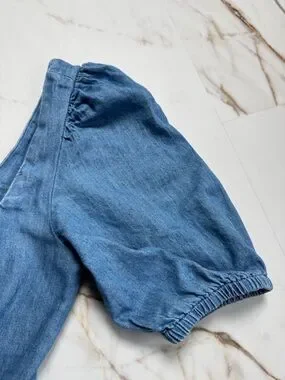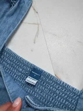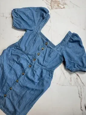 Old Navy Maternity Puff Sleeve Denim Button Front Dress Sz S Summer Western trendy Comfy Resort