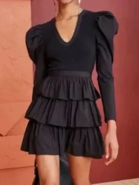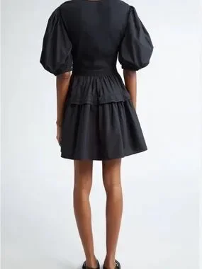 Ulla Johnson Black Puff-Sleeve Tiered Ruffle Mini Dress