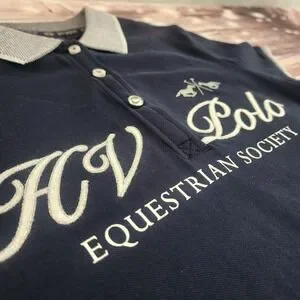 HV Society Womens XS Polo Shirt Blue Embroidered Equestrian Caylee Preppy Riding