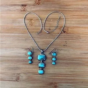 Light Blue with a Little Bit of Green Mottling in this Turquoise Drop Pendant and Matching Earrings from Barse