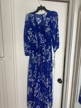 Calvin Klein Cobalt Blue Floral Wrap Maxi Dress