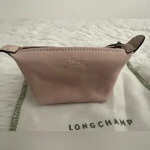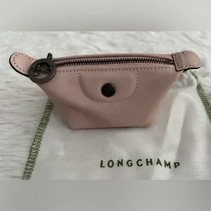 New Longchamp Le Pliage Pale Pink Leather Coin Purse