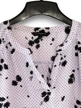 Banana Republic Floral Polka Dot Split Neck Blouse Size M