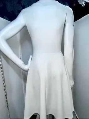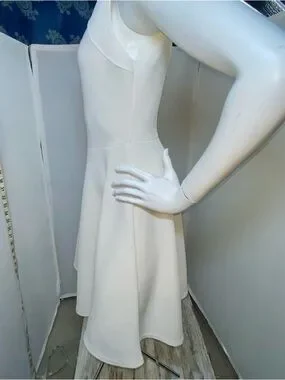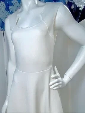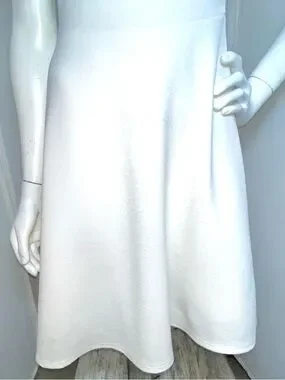 A refined cream sleeveless midi dress with a soft scoop neckline. Clean, flattering fit through the bodice and a gently flared skirt for easy movement. Ideal for polished daytime events or dressed-up evenings. Lightweight, versatile style in a neutral cream shade.