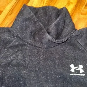 Keywords: Under Armour, pullover, sweatshirt, mock neck, long sleeve, black, women's, activewear, casual, athletic, comfortable, top, speckled, gym, workout