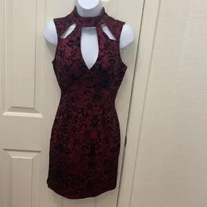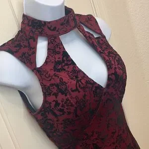 Charlotte Russe Small Cutouts Faux Black Burgundy Velvet Suede Short Sleeve