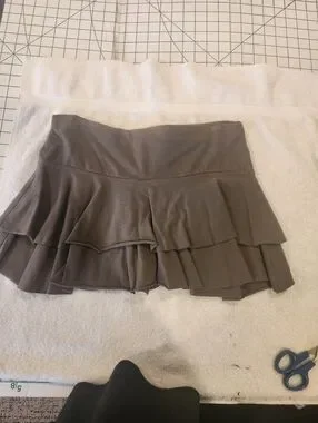 Brown tiered skater skirt with flirty layered ruffles. Soft fabric and a comfortable drawstring waist for an adjustable fit. Easy-to-style silhouette for casual everyday wear. Versatile brown color works with tees or blouses.