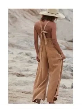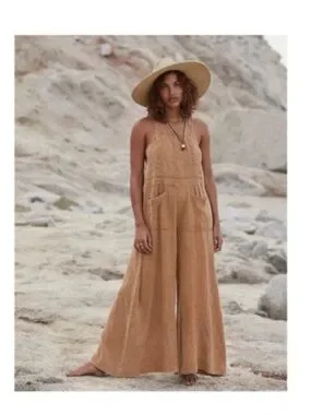 Free People Cyprus Wide leg Overalls Jumpsuit Brown size S