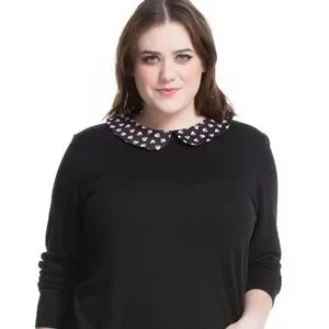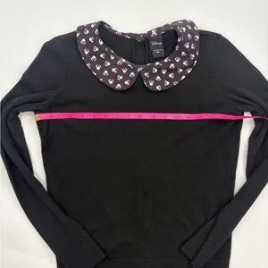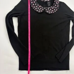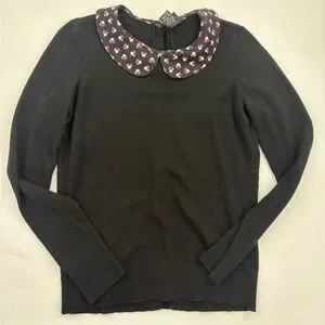 Chic black sweater. Features floral collar. Perfect for casual wear.